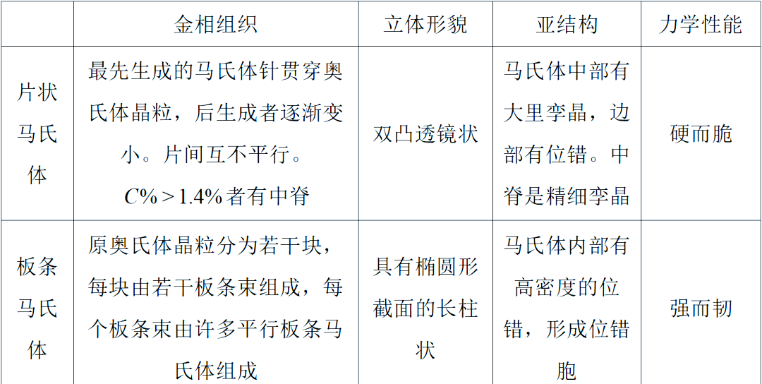 中碳钢的组织由板条状马氏体和片状马氏体共同构成,此外还可见到蝶状和薄片状的马氏体。