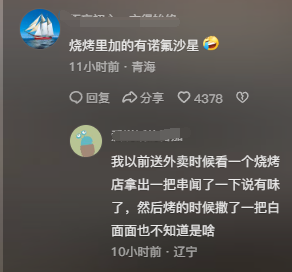 甚至,还有一些网友爆料,烧烤摊因为食材变质,除了用重调料掩盖味道以外,还会加诺氟沙星!就是为了防止顾客吃坏肚子!