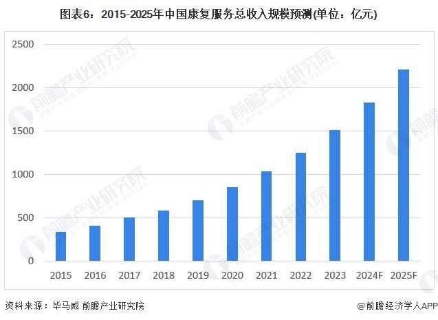 5、2025年中国医疗卫生机构康复服务总收入将突破2200亿元