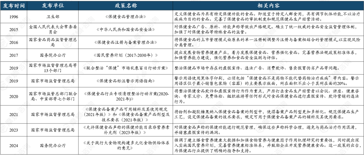 过去30年,国家发布多项政策用于规范保健品市场秩序。自1996年卫生部发布《保健食品管理办法》,明确保健食品定义、审批制度等,为行业监管奠定基础。此后,2015 年相关部门制定广告审查及发布规定,加强广告监管;2016 年实施的《保健食品注册与备案管理办法》,实行注册与备案双轨制,推动《保健食品原料目录》等制定。针对市场乱象,国家多次开展专项治理,如 2019 年集中整治保健食品虚假宣传、售卖假冒伪劣产品等问题。这些政策全方位覆盖注册备案、生产经营、广告宣传等环节,旨在提升保健品质量,保障消费者权益,促进保健品市场健康有序发展。